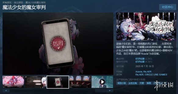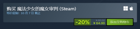 steam超好评视觉小说游戏《魔法少女的魔女审判》在发售后迎来首次折扣,享受8折优惠,仅需64元即可入手,活动截至10月7日。目前游戏在steam获得7205条评价,好评率高达97%;简中区4381条评价,好评率也高达96%。